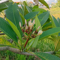 Plumeria alba is a beautiful, fragrant plant that adds visual interest and a delightful aroma to any garden. This tree is often planted as an ornamental plant in gardens, parks, and residential areas throughout tropical and subtropical regions of the world. Plumeria alba has religious significance in several religions, such as Hinduism and Buddhism. In some cultures, this flower is considered a symbol of immortality and purity.